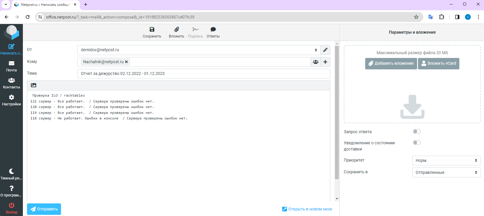 Вот как он выглядит в почте Нетпост: