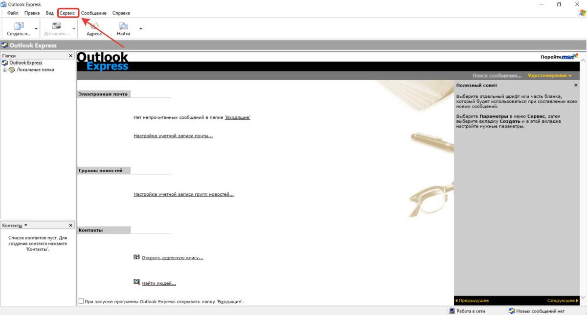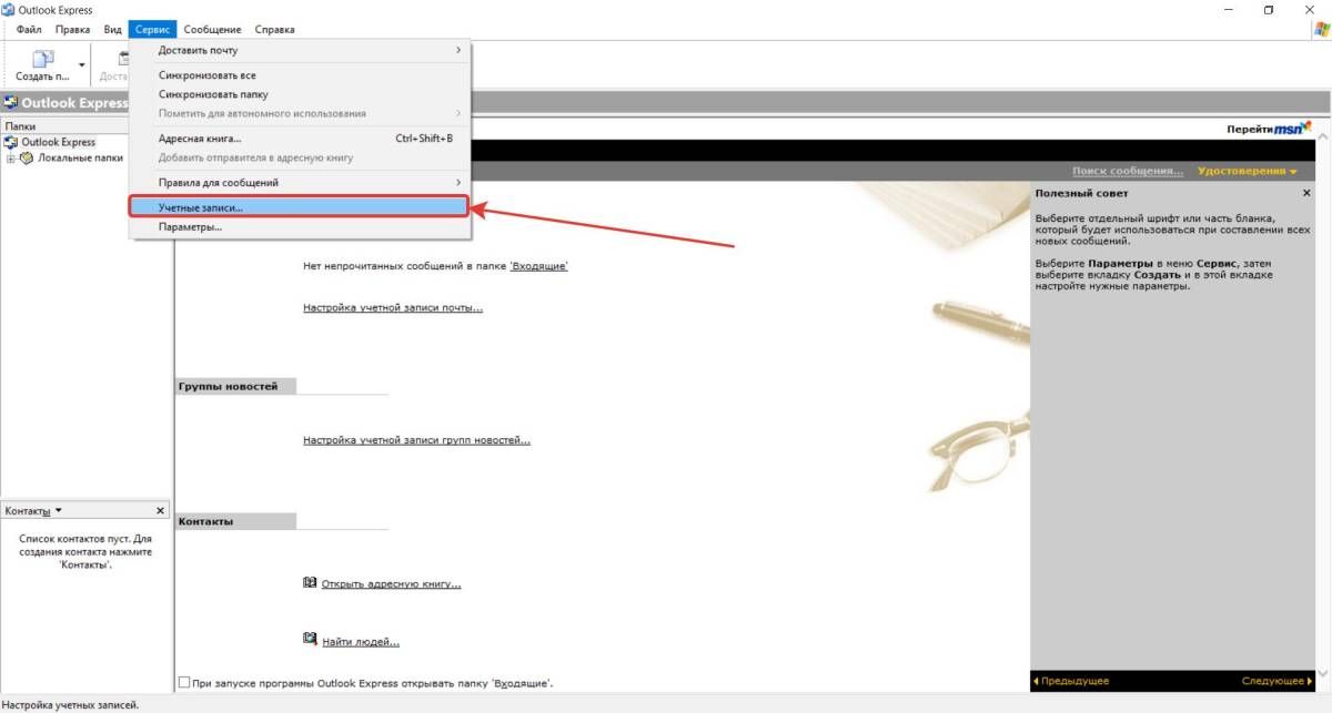 5. Затем, в появившемся окне выберите «Учетные записи электронной почты»: