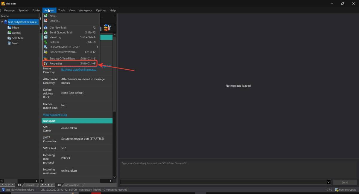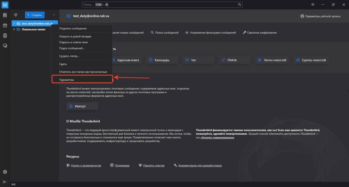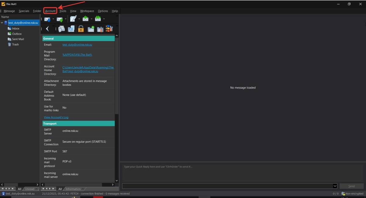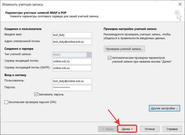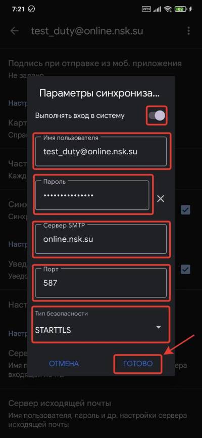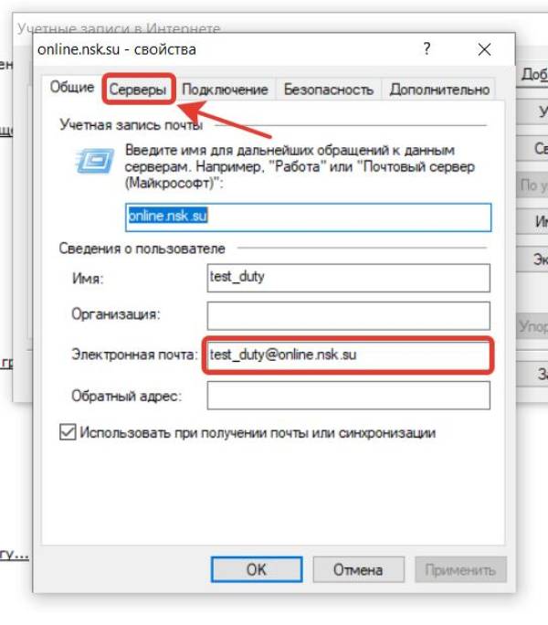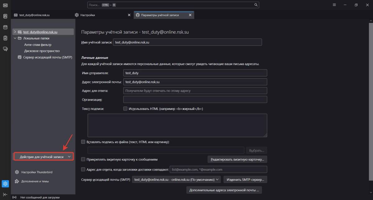 Исходящая почта — укажите сервер исходящей почты online.nsk.su и порт , выберите 587, выберите тип шифрования «STARTTLS».