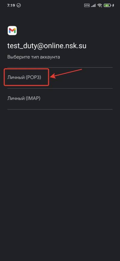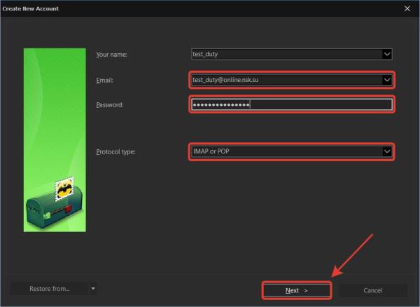 Protocol type — В выпадающем списке выберите «IMAP or POP».