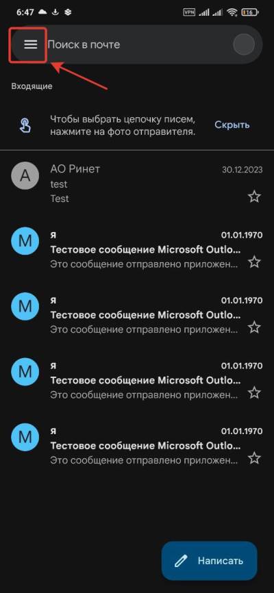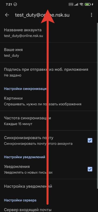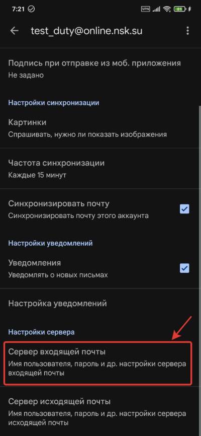 Настройка существующей учетной записи мобильного приложения Gmail (для android)