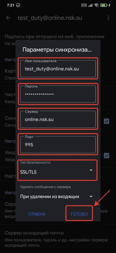 Так как Gmail автоматически подбирает параметры серверов, дальнейшая настройка может не потребоваться. Если все же возникают проблемы с отправкой или получением почты, то перейдите к следующему пункту инструкции: «Настройка существующей учетной записи мобильного приложения Gmail (для android)»