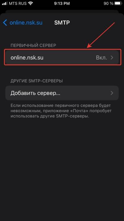 Затем перейдите в настройки сервера исходящей почты нажав на «SMTP»:
