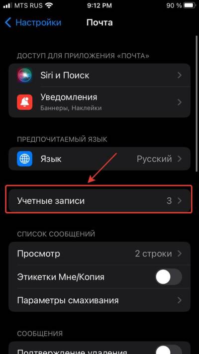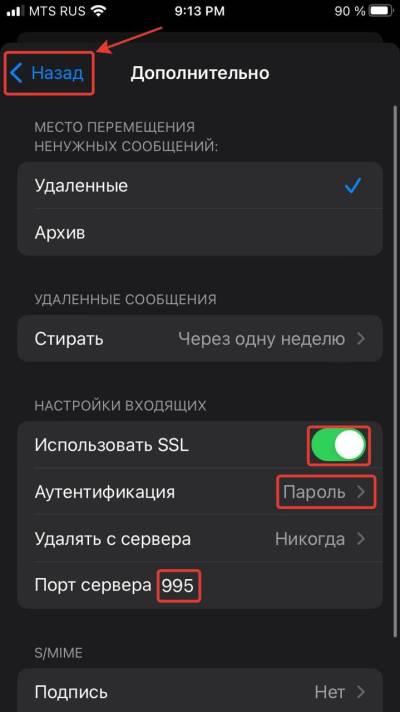 Создание и настройка новой учетной записи приложение почта для iPhone