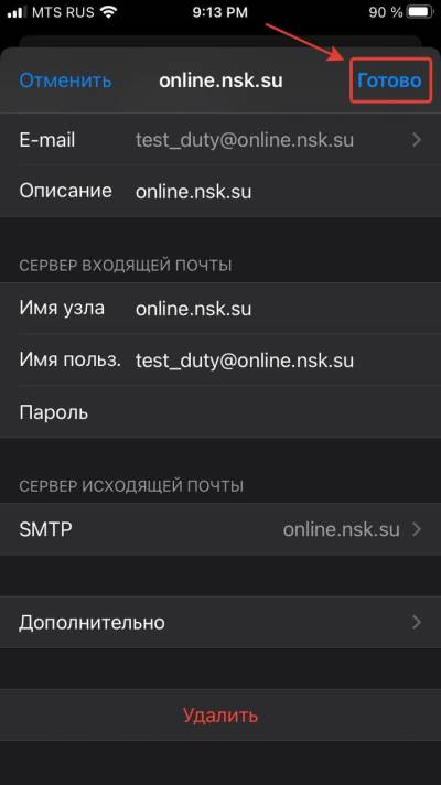 Так как приложение почта для iPhone автоматически подбирает параметры серверов, дальнейшая настройка может не потребоваться. Если все же возникают проблемы с отправкой или получением почты, то перейдите к следующему пункту инструкции: «Настройка существующей учетной записи приложение почта для iPhone»