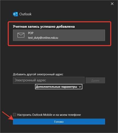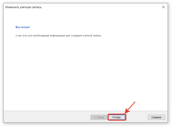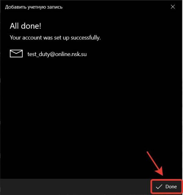 7. Убедитесь, что учетная запись успешно добавлена и нажмите «Готово»: