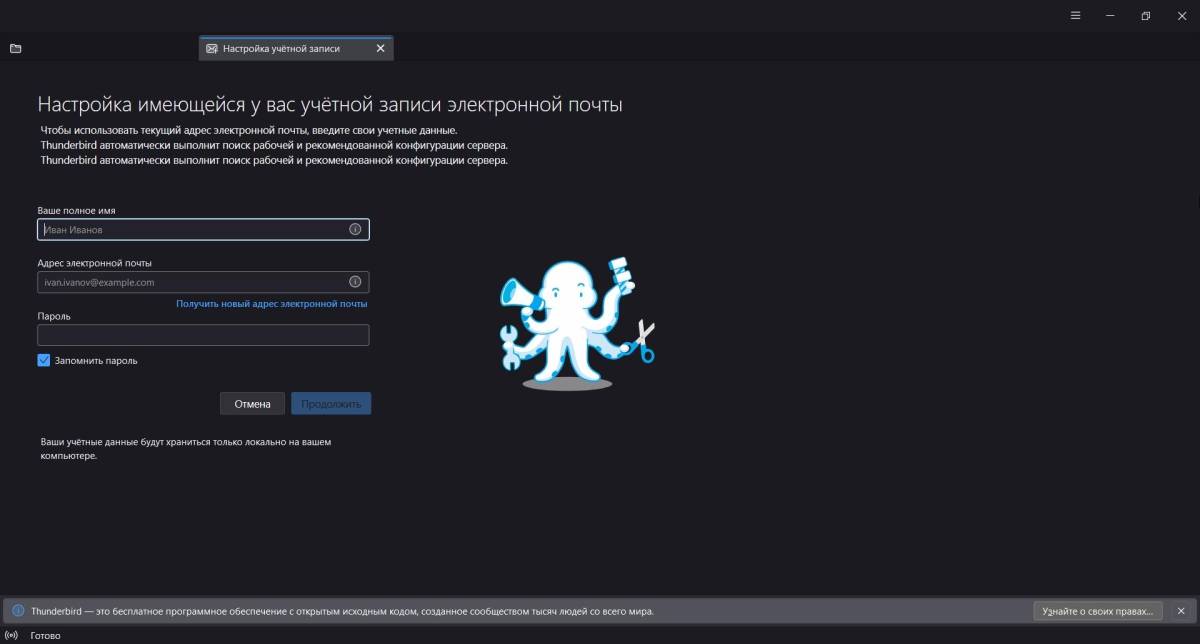 8. Создание и настройка новой учетной записи завершены и программа готова к использованию!